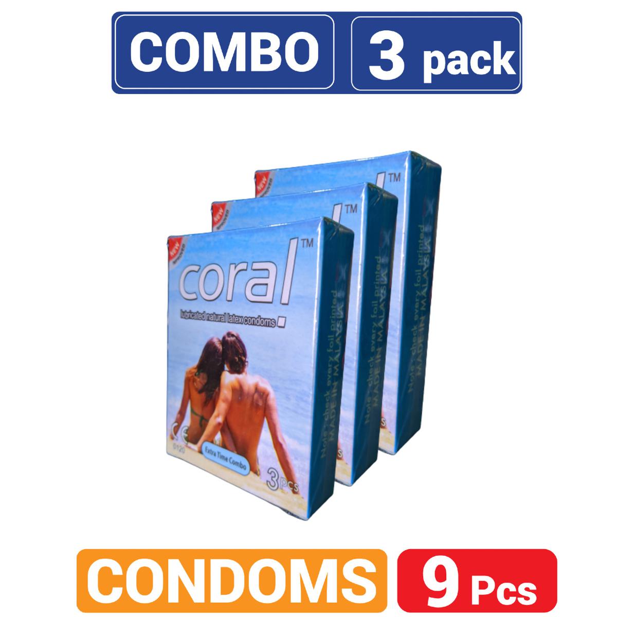 Coral Extra Time Combo Lubricated Natural Latex Condoms - Combo Pack - 3x3=9pcs