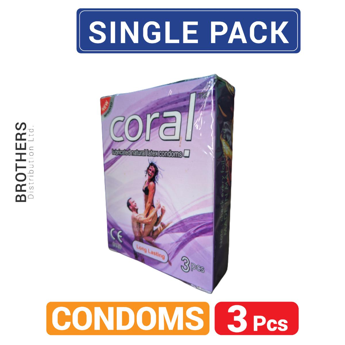 Coral Long Lasting Lubricated Natural Latex Condoms - Single Pack - 3x1=3Pcs
