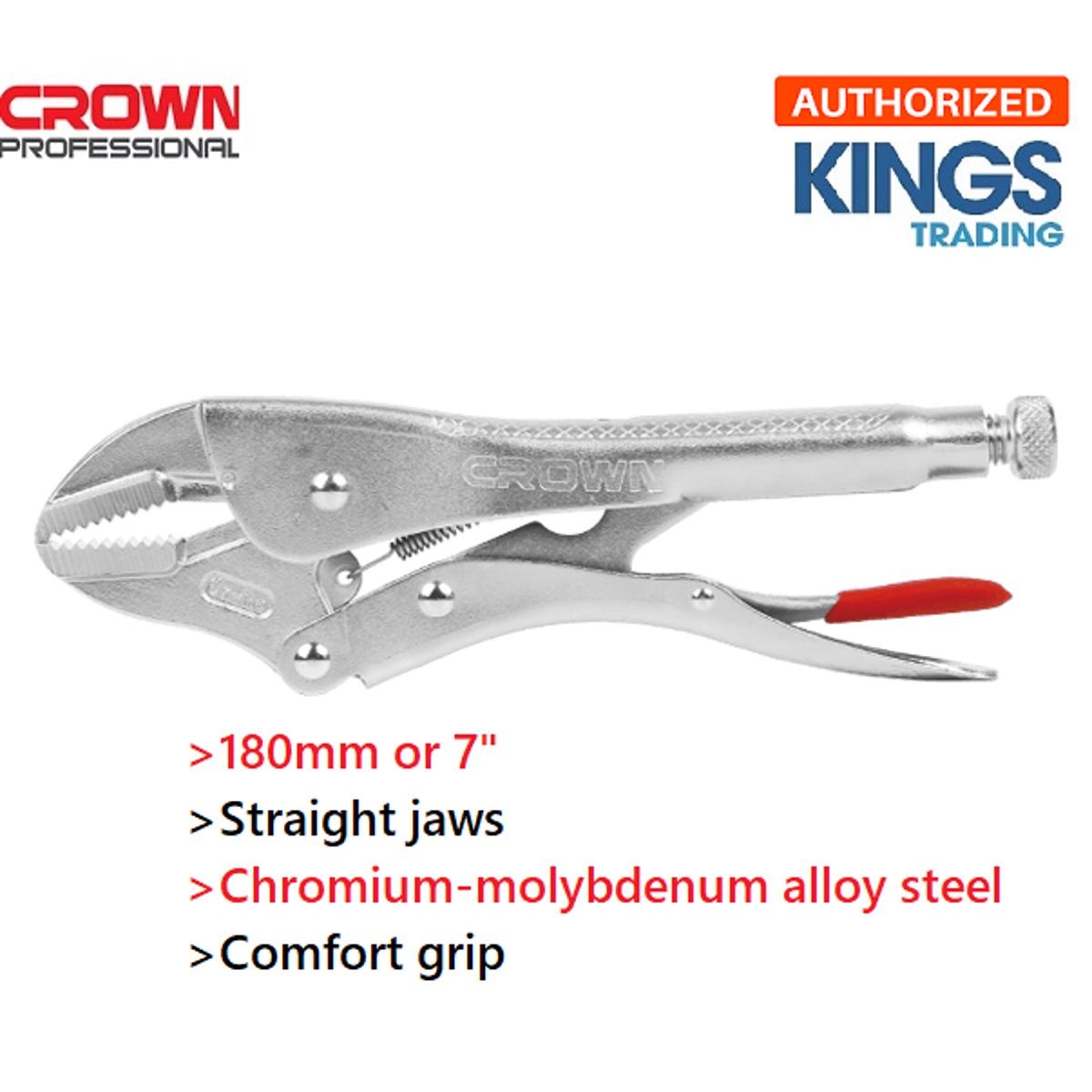 - Step 1: Filtered product Attributes: { "Brand": "Crown", "Product Title": "CROWN 7\" Locking Grip Pliers, 160mm, Straight Jaws 180mm CPHPL-GSA07 - Kings Trading", "Model": "CPHPL-GSA07", "Category Path": "Tools, DIY & Outdoor>Hand Tools>Pliers" } Step 2: additional Keywords: ["Brand: Crown", "Model: CPHPL-GSA07", "Size: 180mm or 7\"", "Chromium-molybdenum alloy steel", "straight jaws - the pliers are equipped with straight jaws.", "Comfort grip.", "Locking grip pliers"] Step 3: Introducing the CROWN 7" Locking Grip Pliers, model CPHPL-GSA07, designed for precision and durability. Crafted from chromium-molybdenum alloy steel, these pliers feature straight jaws for a secure grip. The 180mm size makes them ideal for various DIY and outdoor tasks. With a comfortable grip and locking mechanism, these pliers offer ease of use and safety. Whether you're a professional tradesperson or a DIY enthusiast, these CROWN pliers are a reliable addition to your toolbox. Step 4: The tone of voice is in accordance with Informative. No amendments needed. Final Product Description: Introducing the CROWN 7" Locking Grip Pliers, model CPHPL-GSA07, designed for precision and durability. Crafted from chromium-molybdenum alloy steel, these pliers feature straight jaws for a secure grip. The 180mm size makes them ideal for various DIY and outdoor tasks. With a comfortable grip and locking mechanism, these pliers offer ease of use and safety. Whether you're a professional tradesperson or a DIY enthusiast, these CROWN pliers are a reliable addition to your toolbox.