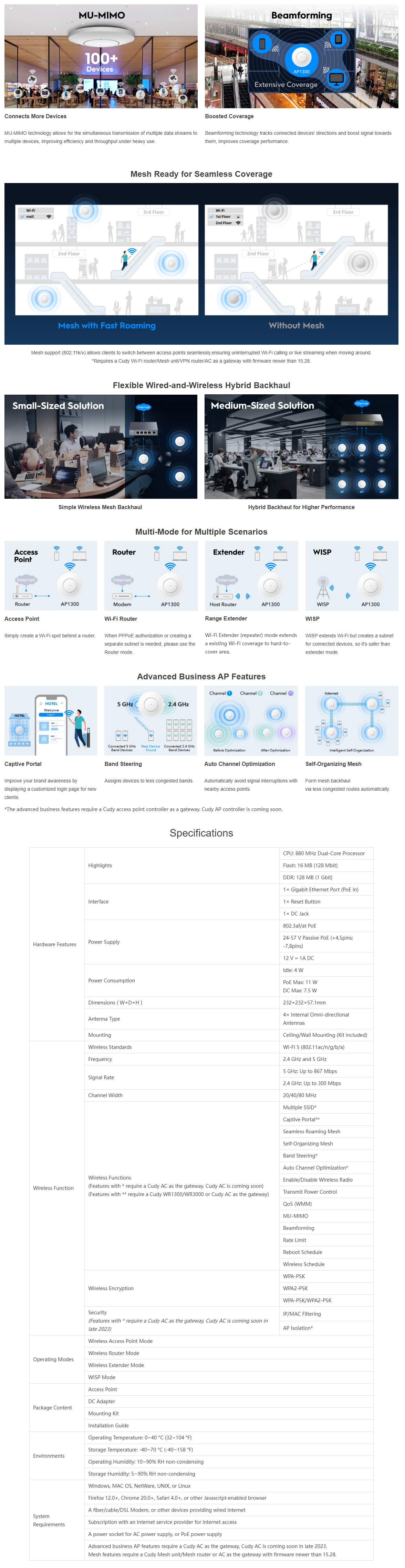 ● 802.3at/af PoE, Passive PoE, or DC (DC adapter included)