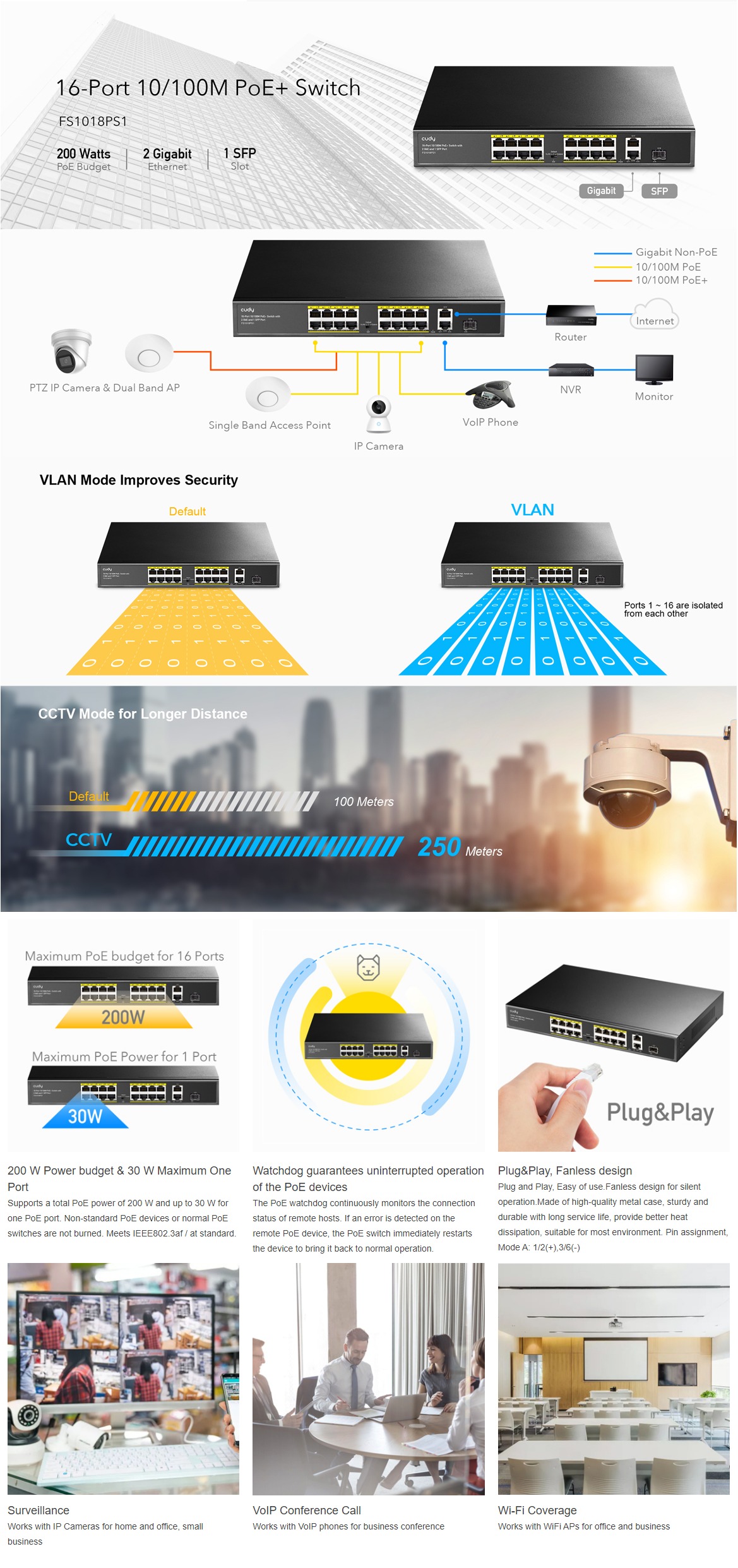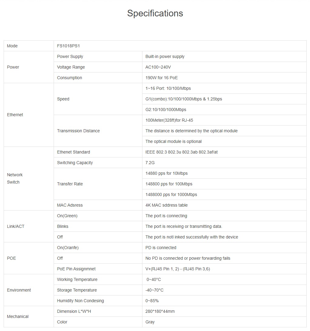 - 2 10/100/1000M uplink ports +1 SFP Port