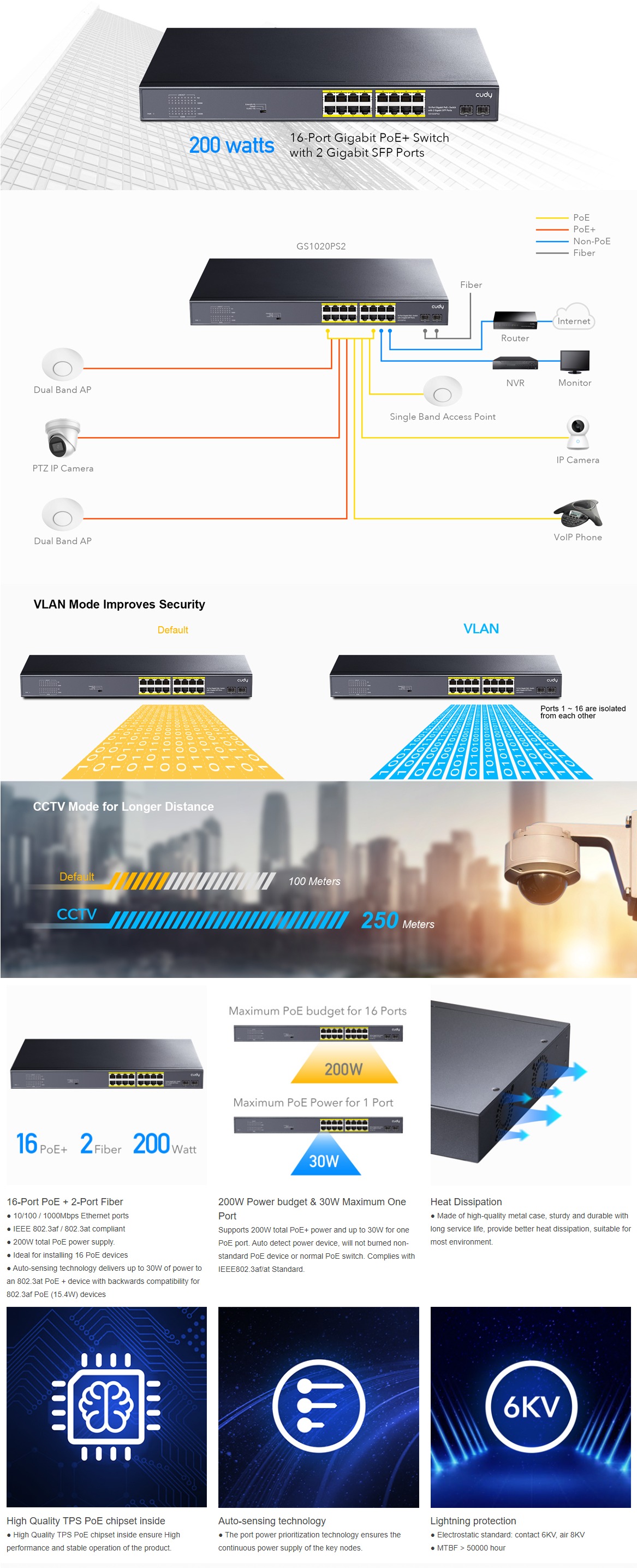 - VLAN mode supports 16 POE+ ports isolated from each other