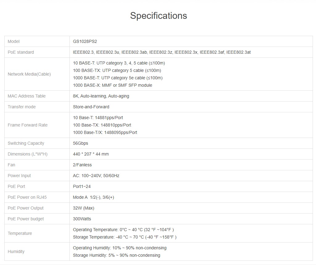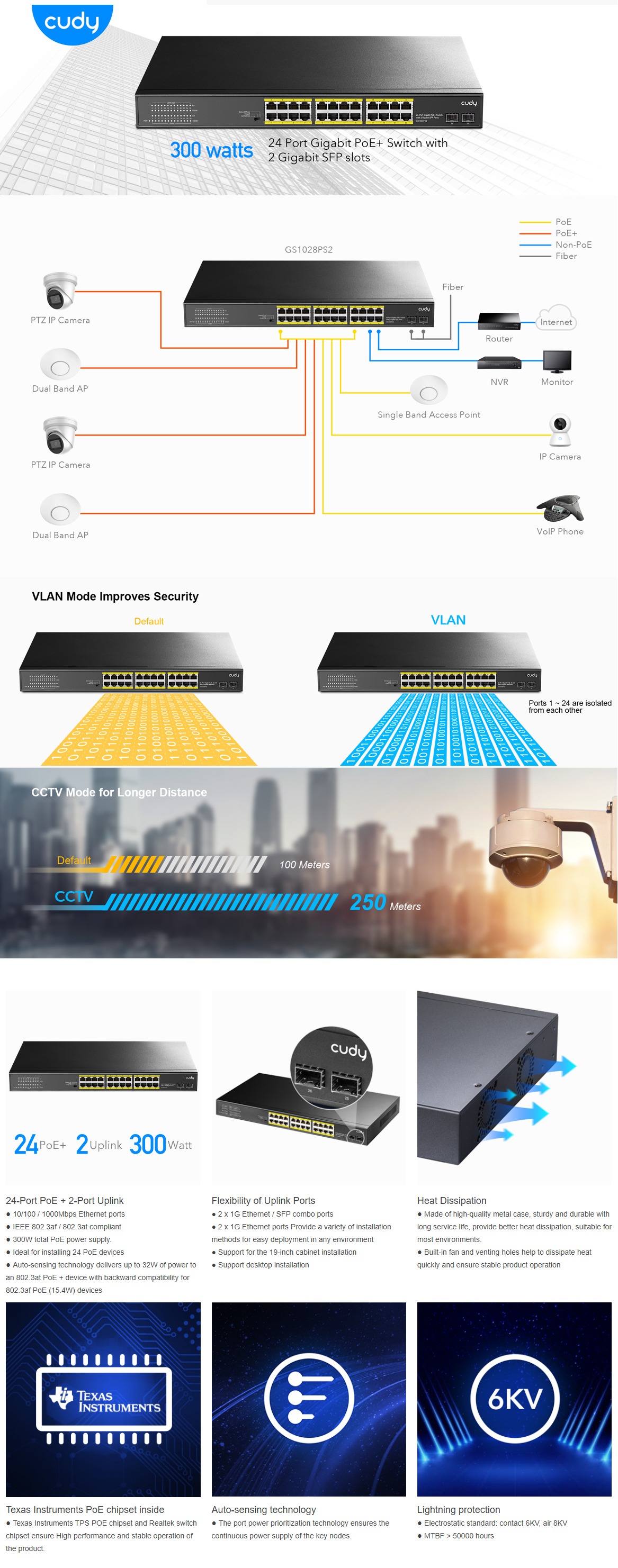 - VLAN mode supports 24 POE+ ports isolated from each other