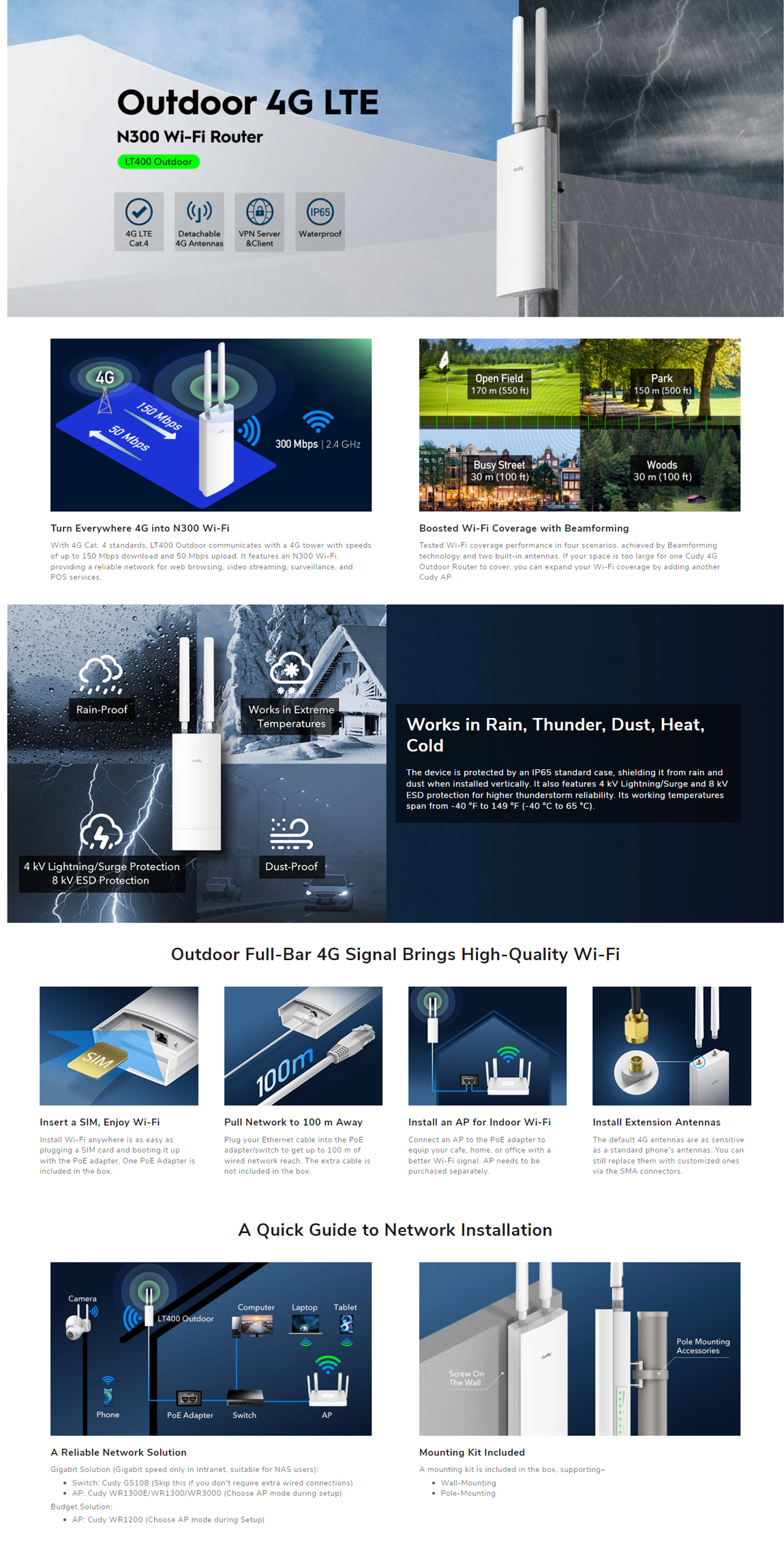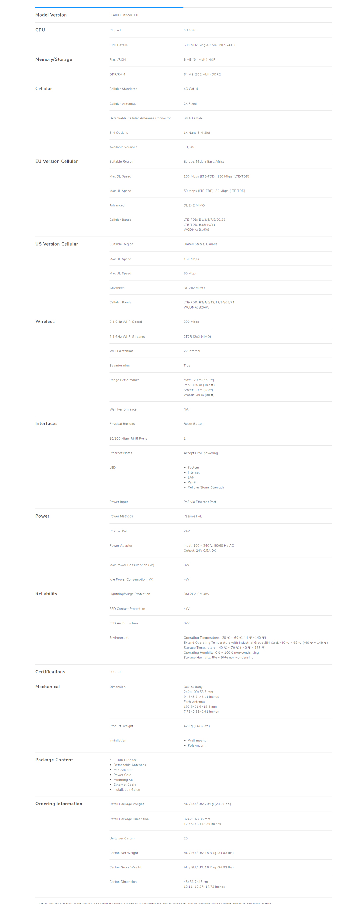 ● Antenna: 2× Internal & 2× External Detachable Antennas