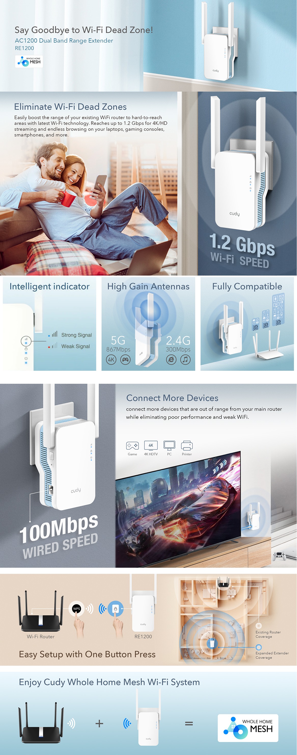 - 2.4 GHz 300Mbps+5 GHz 867Mbps Wi-Fi Speed