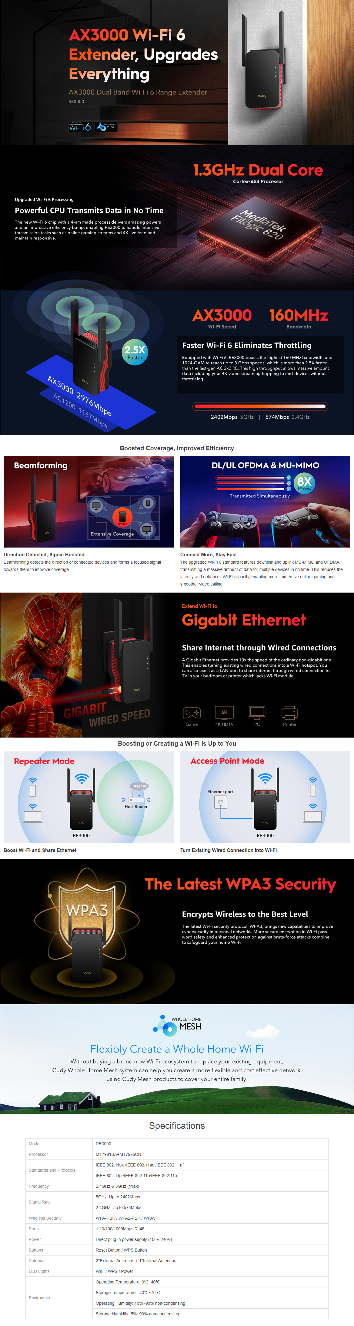 ● Extremely Fast AX3000 Wi-Fi 6 Technology