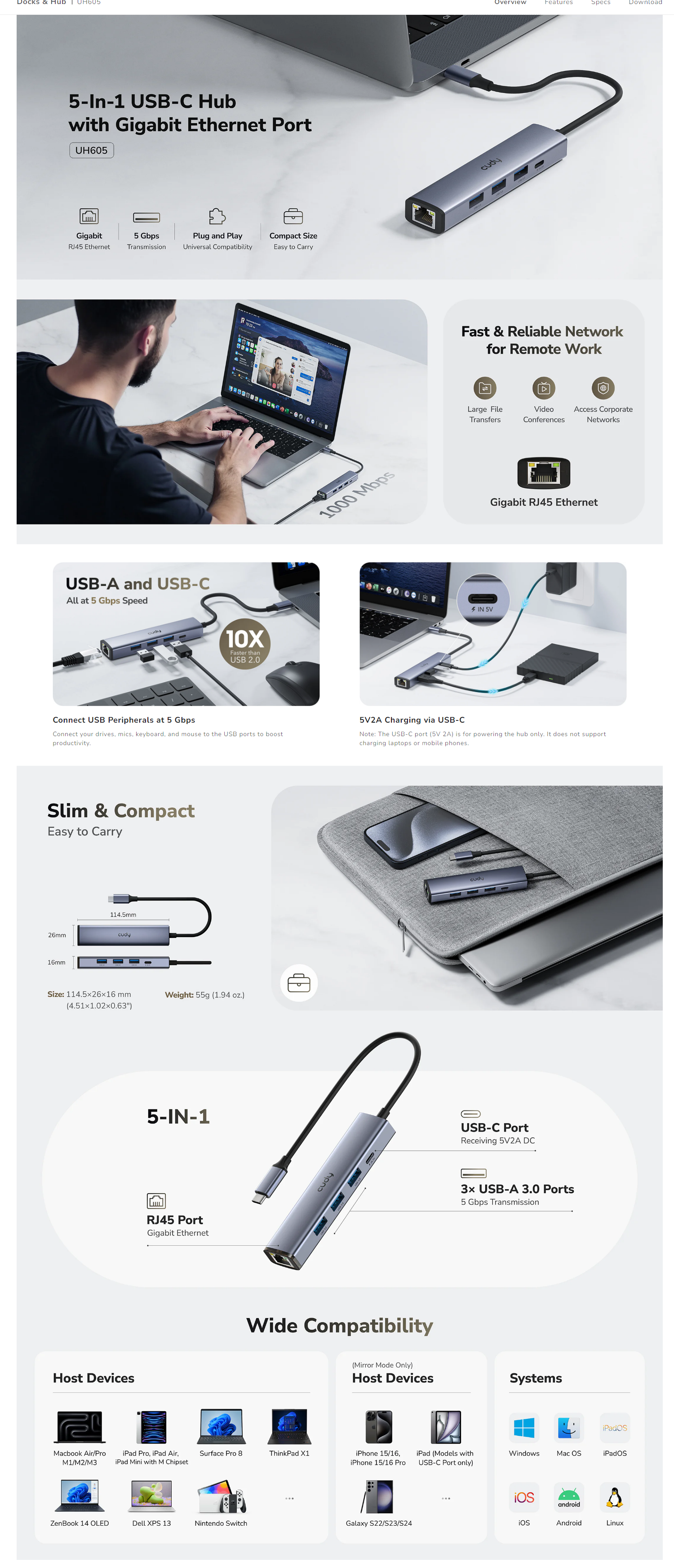 1× Upstream USB-A Male (5 Gbps)