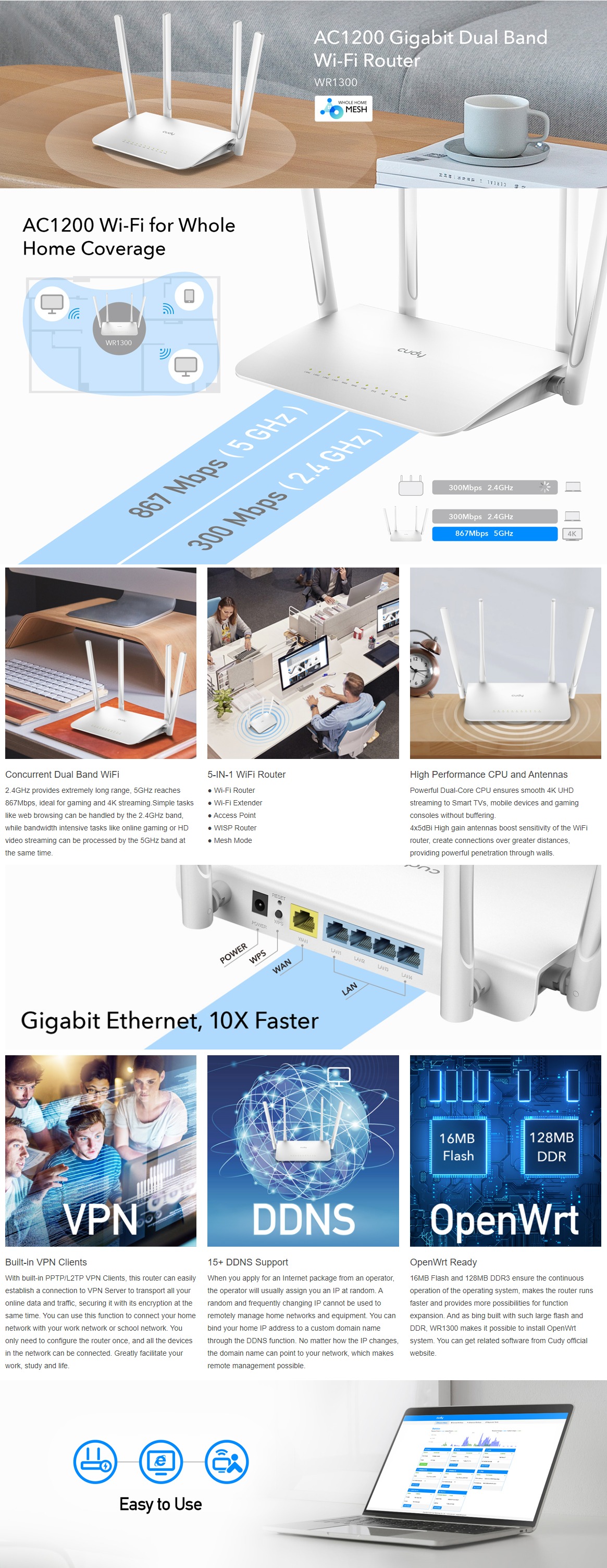 5-IN-1 WiFi Router/ Mesh/Repeater/ WISP/ Access Point