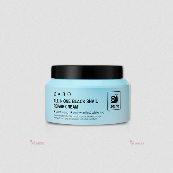 Step 4: Moisturize – DABO All In One Black Snail Repair Cream Take a pea sized amount and apply to your face and neck. Then gently massage around your face with your fingertips.