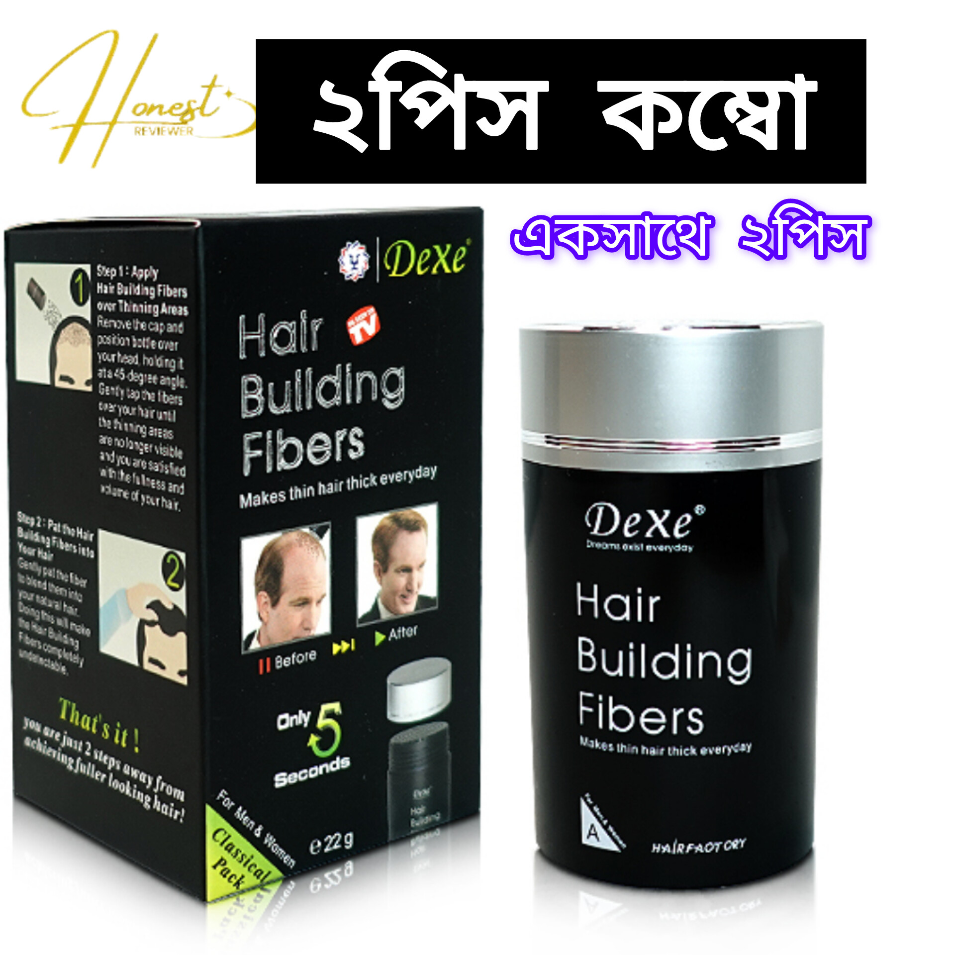Dexe Hair Building Fiber Made in UK 2pcs combo - Authentic Dexe Hair Fiber acces - 2pcs hair fiber