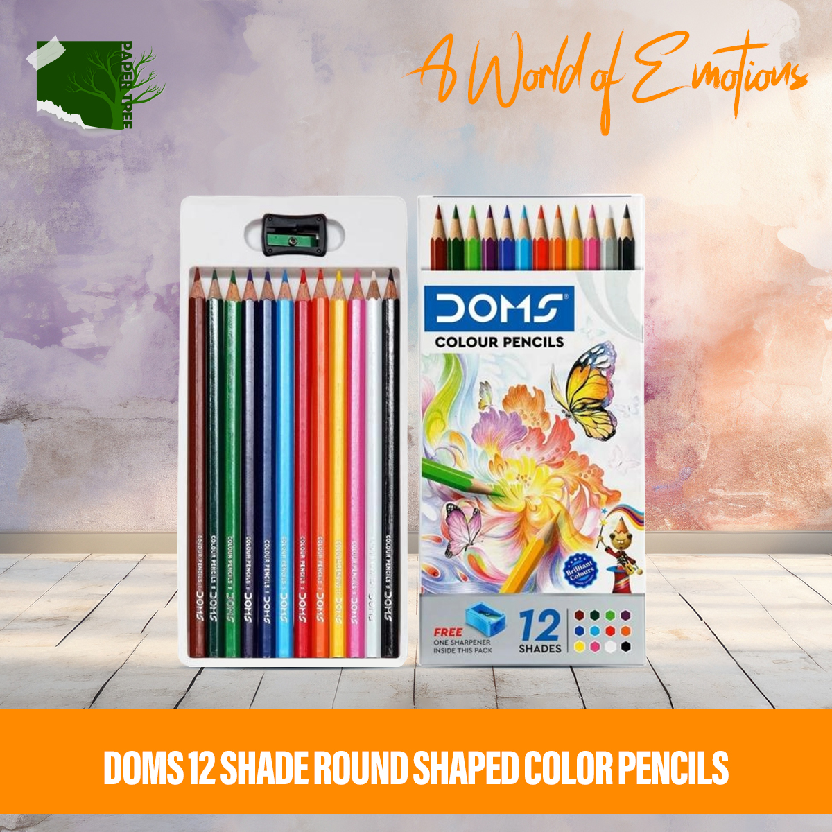 Introducing the DOMS 12 Shade Round Shaped Color Pencils, perfect for all your coloring needs. With 12 vibrant shades to choose from, you can let your creativity run wild. These color pencils are round shaped, making them comfortable to hold and easy to use. Ideal for both adults and children, they are perfect for coloring books, art projects, and more. The DOMS brand is known for its high-quality stationery products, ensuring that these color pencils are durable and long-lasting. Whether you're a professional artist or just starting out, these color pencils are a must-have for your collection.