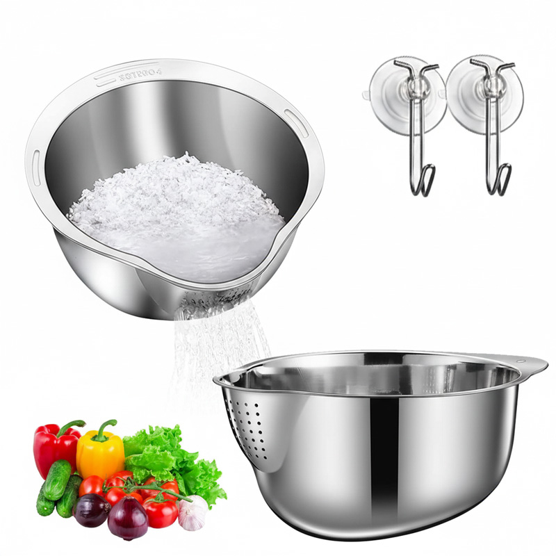 - Efficient and Safe to Use: The evenly spaced drainage holes on the side of the strainer offer fast draining while keeping rice, vegetables, and fruits in the food strainer. This makes it easy and safe to use for any home cook or professional chef.