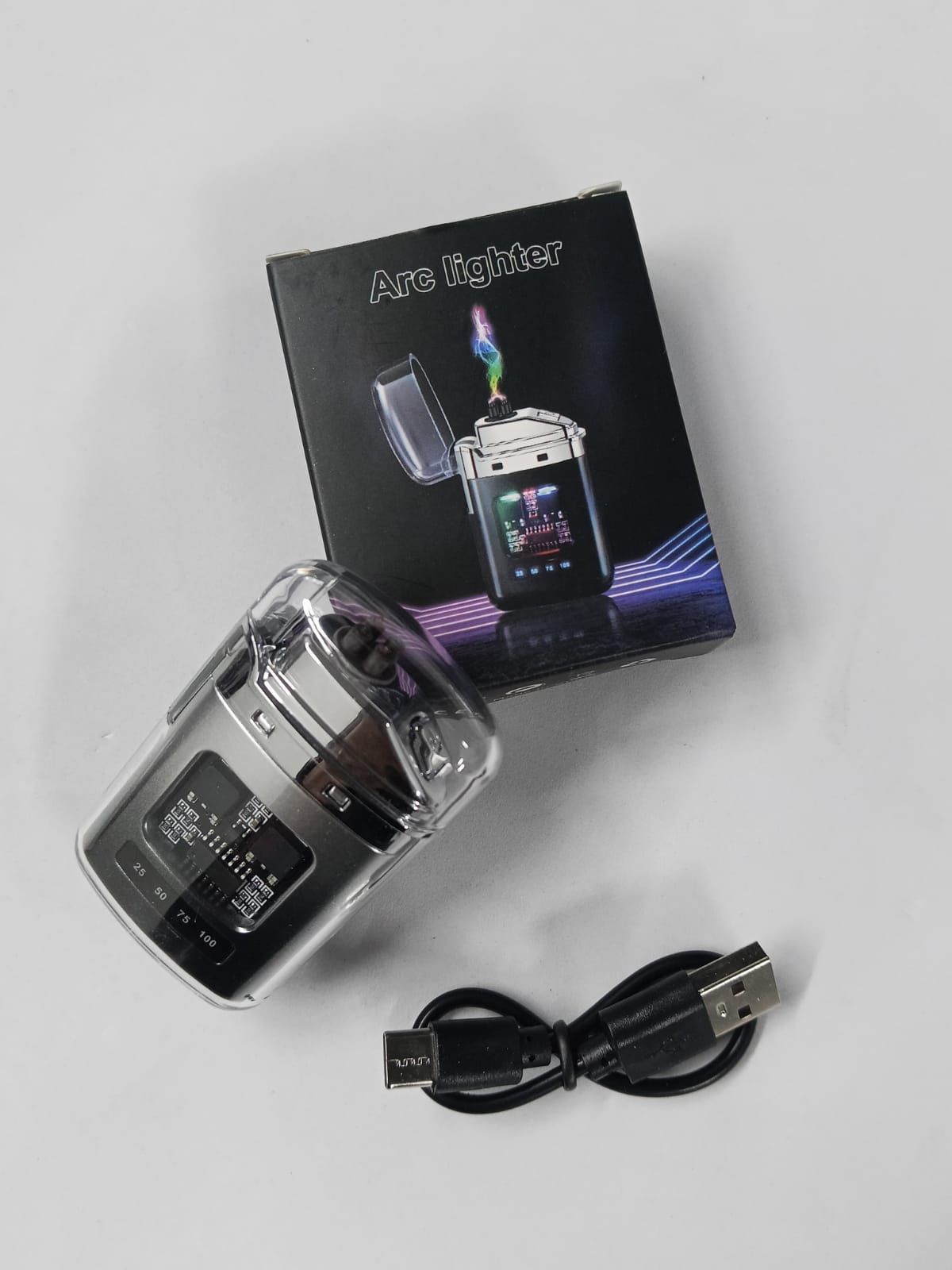 Unlike traditional lighters, it doesn't use a flame, relying instead on the electric arc.