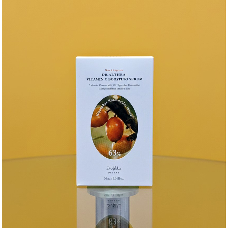 - Dr. Althea Vitamin C Boosting Serum (30 ml) is a Korean‑formulated skincare serum designed to revitalize and brighten your skin. Featuring a potent blend of Hippophae Rhamnoides Water (rich in Vitamin C), niacinamide, tranexamic acid, and multiple hyaluronic acids, it targets dullness, dark spots, and uneven tone while deeply hydrating the skin. Its lightweight, fast‑absorbing formula is free from artificial colors and scents, making it gentle and suitable for daily use—even for sensitive skin types. Regular use helps reveal a radiant, smoother, and more balanced complexion.
