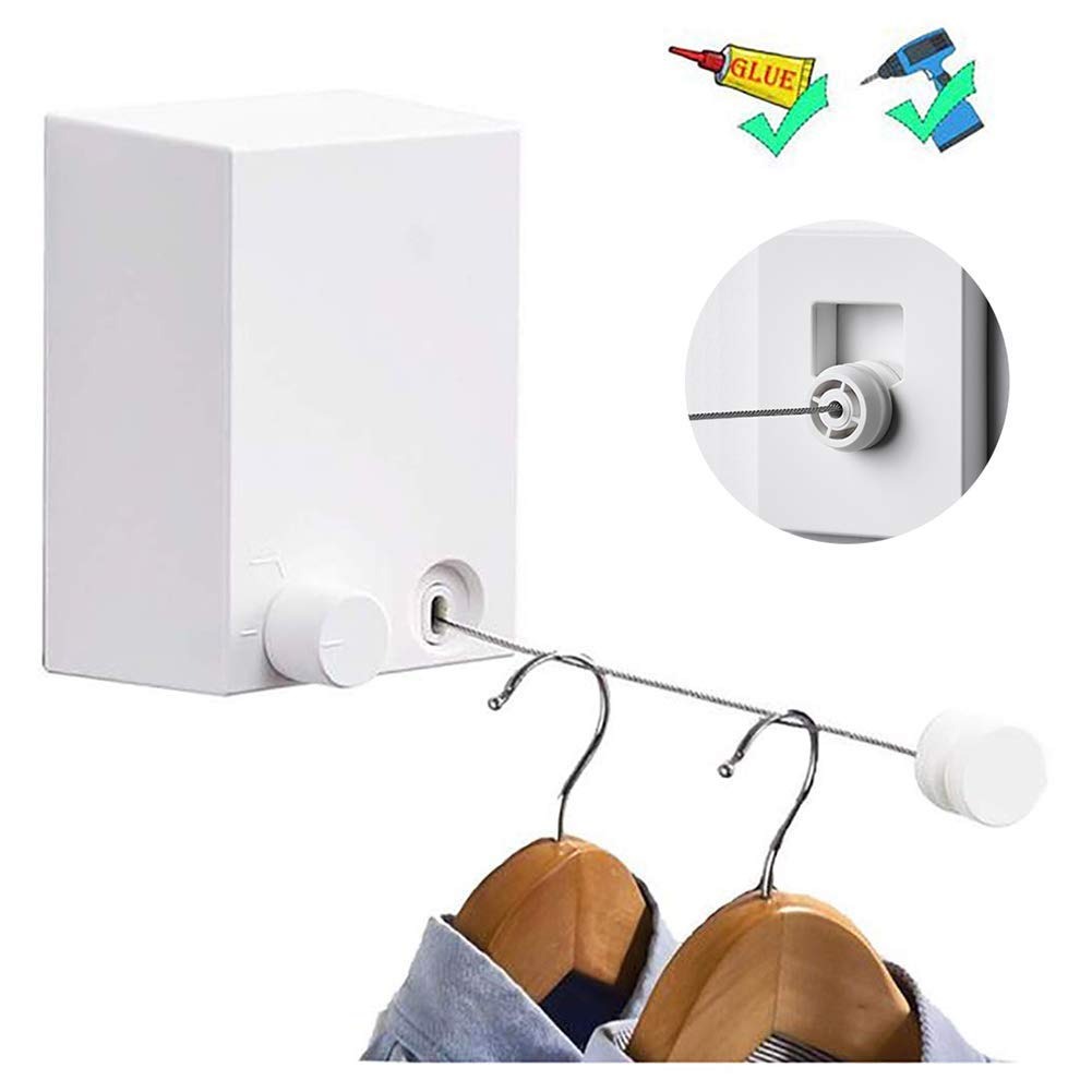 - 【Two Installation Methods】Equipped with complete installation accessories. A: drilling.(actual test, it will be more solid). B: install with glue, please press and hold at least after applying the glue keep it for 1 minute, don't hang anything in 72 hours; Note: The two ends of the clothesline need to be installed in horizontal and opposite positions. When the switch is released, the wire rope can be pulled open. After the distance is pulled, remember to tighten the switch to prevent automati