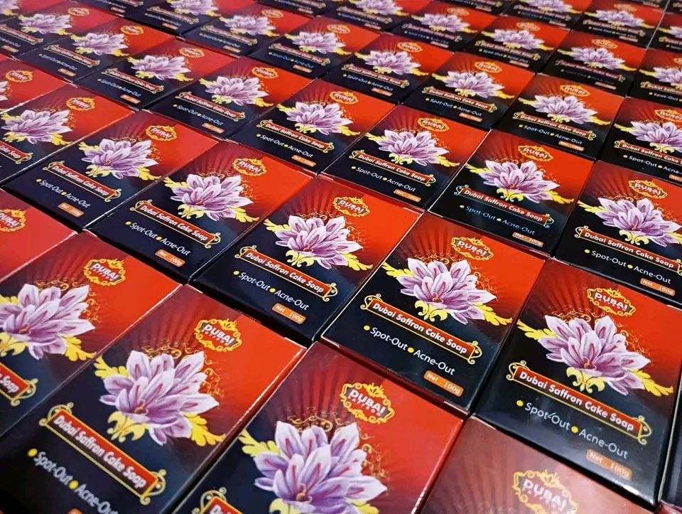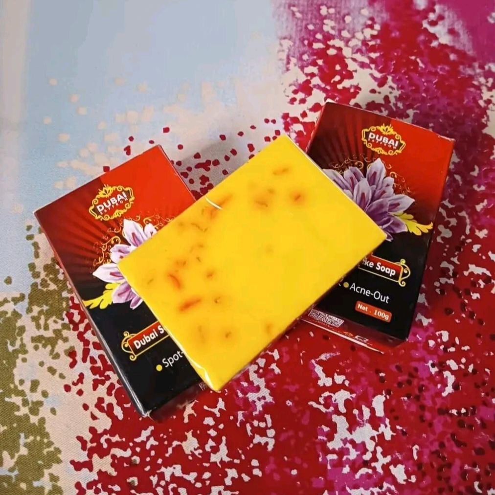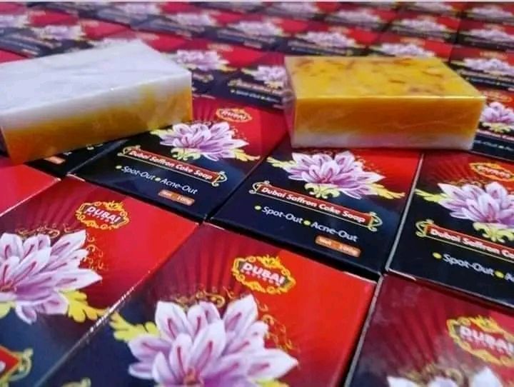 If you're looking to brighten your skin by 5-6 shades, you must include the Dubai Saffron Cake Soap in your daily skincare routine! Ingredients: Cherry, Saffron, White speed serum, Kojic acid, Arbutin, Hyaluronic acid, Jojoba, Sun- flower seed oil, Vit A,D,E,B12. Glycerin, Aloe Vera extract, Laser extract. sodium Hydroxide, Perfume, soluble Collagen, Arbutin, Sodium Chloride, Pomace Olive Oil, Tetra sodium EDTA, BHT, CI 45100