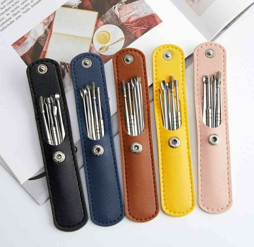 - leather Ear picking set, 6 pcs ear picking tools, portable ear cleaner, stainless steel ear buds with leather case