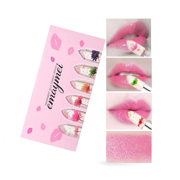 emaymei Transparent Jelly Change Lipstick Pack of 6 Waterproof Crystal Jelly Lipstick with Flower Inside | 3.8gm