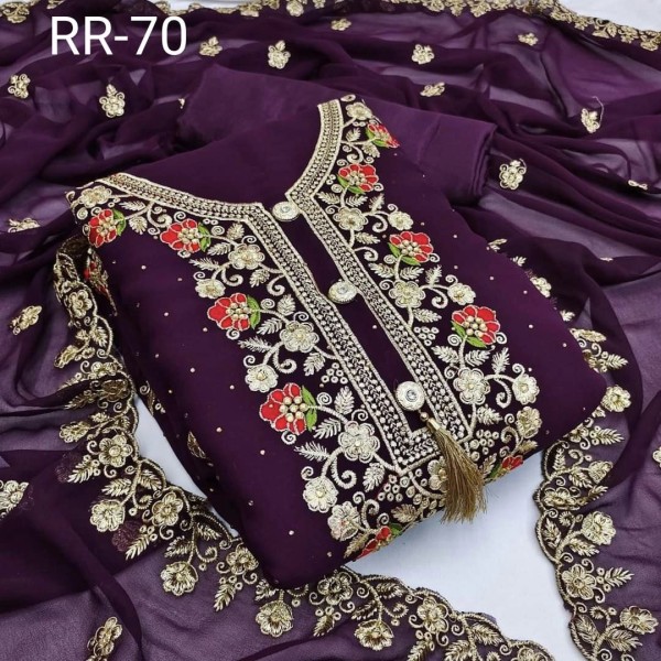 Embroidery & Stone Work Georgette Kameez Four Peace (GR-116)