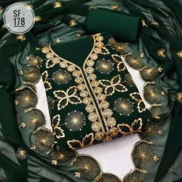 Embroidery & Stone Work Georgette Kameez Four Peace (GRS-137)