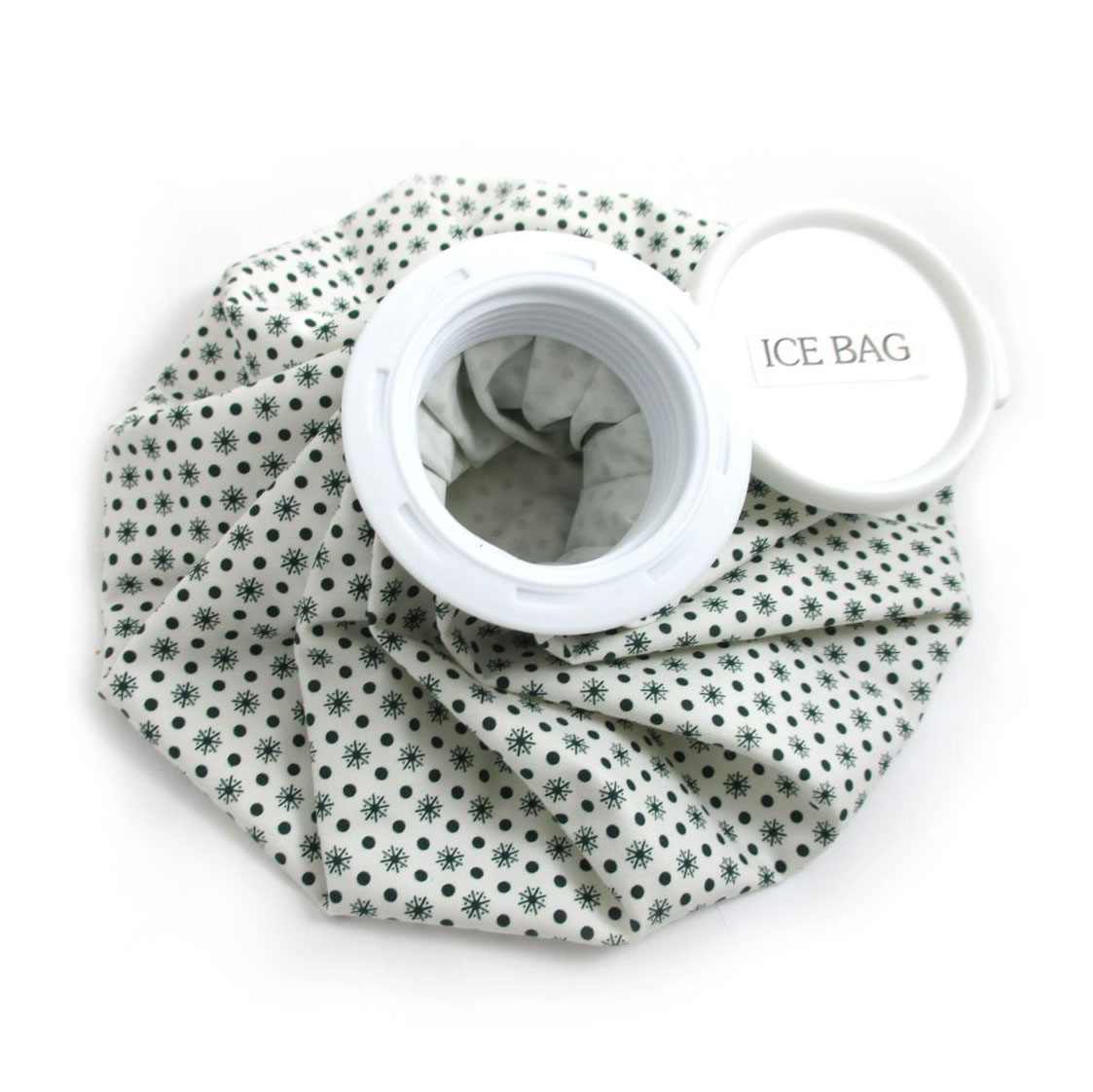 The Relief Pak English Style Ice Cap Reusable Ice Bag is constructed of a thick rubberized fabric that securely holds ice and melted water inside. The material transfers the cold from the ice to relieve pain and swelling. The plastic cap easily removes to fill the bag with ice and provides a convenient area to hold the bag in place. The bags are available in a variety of sizes that can treat small targeted areas or larger generalized areas.