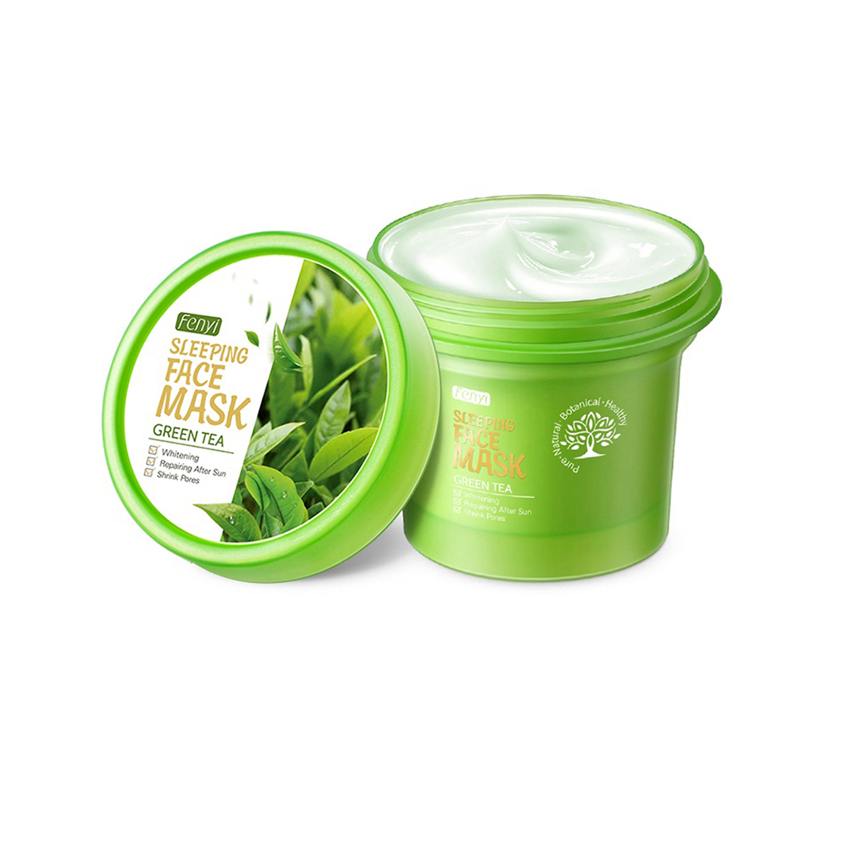 The selected "T+X" formula for Fenyi Green Tea Sleeping Face Mask contains Korean Camellia Sinensis Leaf Extract, Sodium Hyaluronate, Chamomilla Recutita (Matricaria) Flower Extract and Portulaca Oleracea Extract, which can soothe skin after sunburn, tighten pores and restore skin elasticity. Camellia Sinensis Leaf Extract can effectively inhibit Tyrosinase activity, reduce the appearance of melanin and brighten skin tone.
