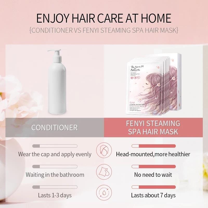 FENYI Steaming SPA Hair Mask contains multiple plant extracts, West Africa Avocado and European Hydrolyzed protein, which can nourish the dry hair, repair the damaged hair and smooth the frizz hair Prolonged use of this product can sloves the hair problems like knots, dull hair and hair split ends it can effectively repair hair cuticle, promote hair metabolism and make your hair soft, healthy and bright.