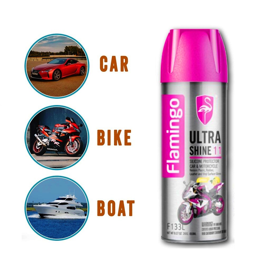 - Flamingo Ultra Shine 11 Silicone Protector Car & Motorbike-450ml, Flamingo Ultra Shine Spray Polish, Motorcycle silicon shine spray polish