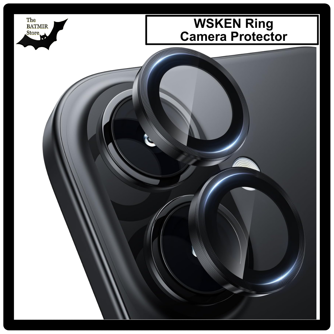 For iPhone 16 Plus Black WSKEN Camera Lens Protector Ring Alloy Ultra Thin Shatterproof 9H Tempered Glass Camera Screen Protector