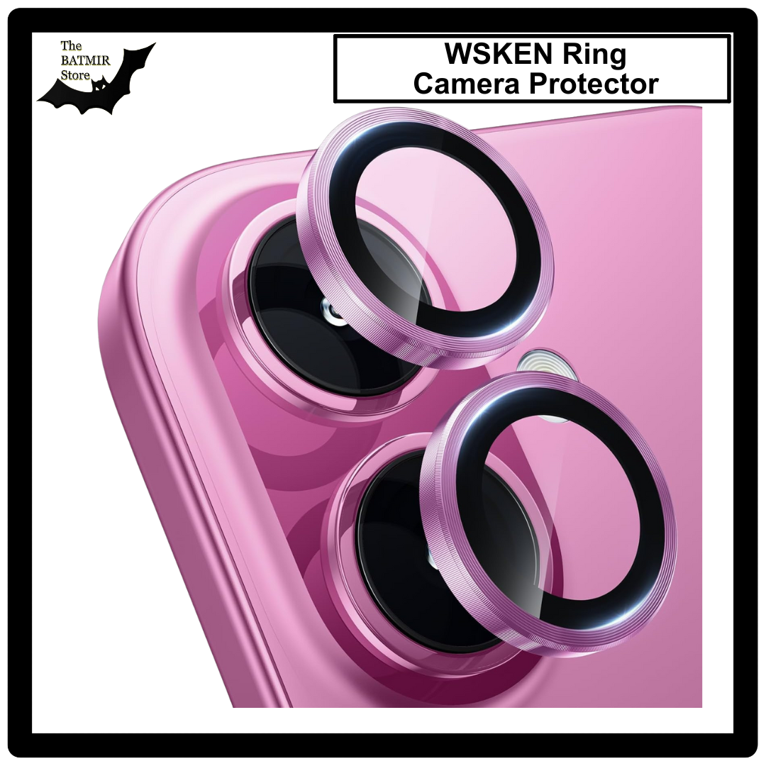 For iPhone 16 Plus Pink WSKEN Camera Lens Protector Ring Alloy Ultra Thin Shatterproof 9H Tempered Glass Camera Screen Protector