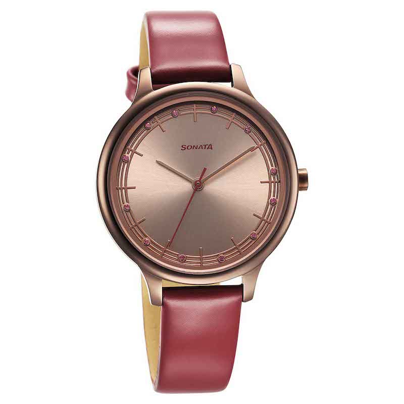 Sonata Pink Round Dial Rose Gold Strap Watch For Ladies is crafted to offer a blend of style, comfort, and durability. Designed for everyday wear, it features a refined dial layout and premium-quality strap materials that ensure lasting performance. Whether used for work, casual outings, or special occasions, this watch enhances your look with elegance and dependable timekeeping.