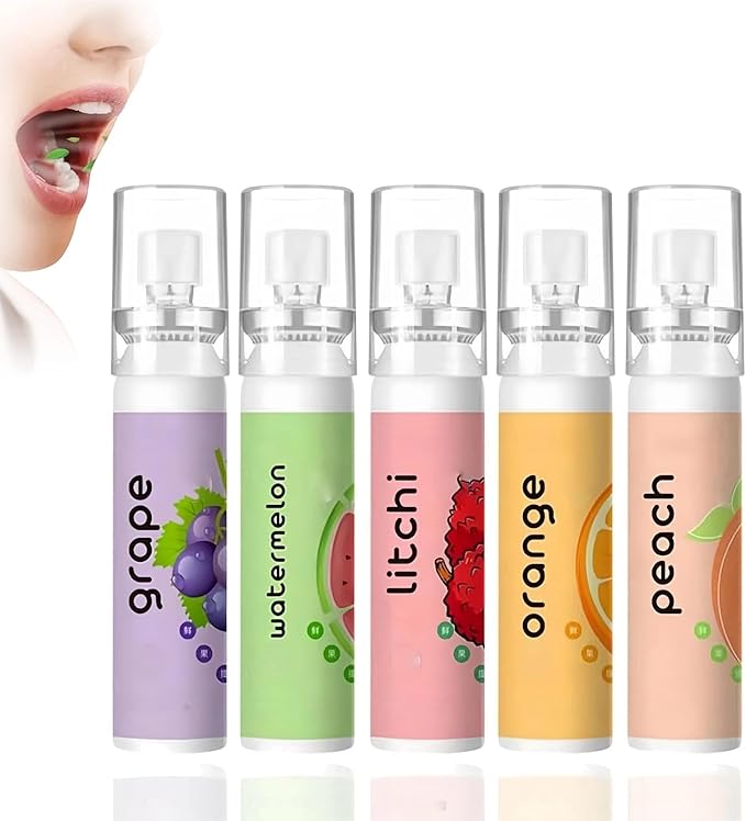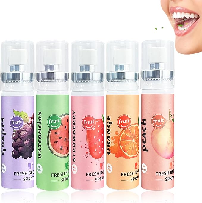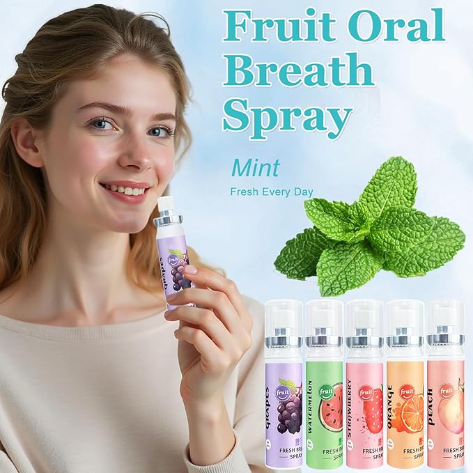 - 【Fruit Oral Breath Spray】The mouth spray for bad breath is a convenient way to keep your breath fresh while on the go.The breath freshener spray promotes oral health by establishing a refreshing environment in the mouth.This mouth freshener spray allows users to enjoy a different taste experience each time they use the spray.Try this fresh breath spray quickly.