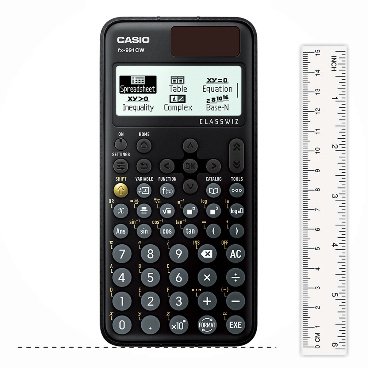 The Perfect Math Learning Tool With Approachable and Intuitive New Design. FX-991CW Non Programmable Scientific Calculator. The new ClassWiz CW Series is designed for the teaching and studying of today. With its new design and key placement, it can be used by anyone. Includes MathBox, a fun math learning feature The Casio FX-991CW Calculator is an approachable and intuitive design. The new display and key layout make navigation and operation smooth, enabling students to focus on learning while making it easier for teachers to demonstrate complex functions• Model: Fx 991cw calculator Type: Scientific Calculator. Classwiz.Matrix Calculation.Non Programmable, Display: Dot Matrix Display.Number of Functions: 540+.Key: Plastic keys & smooth keys, Power Info: Power Sources Solar & BatteryCustomer Questions and answers :
