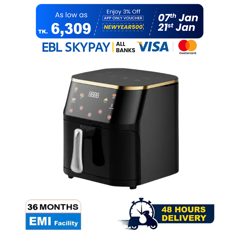 Gazi Smiss 1800W 7 litre Air Fryer (GA-AF-11) with Stainless Steel Surface and Automatic Shut Off Technology and Frying, Digital Touch Control and Timer  Customizable Temperature Settings