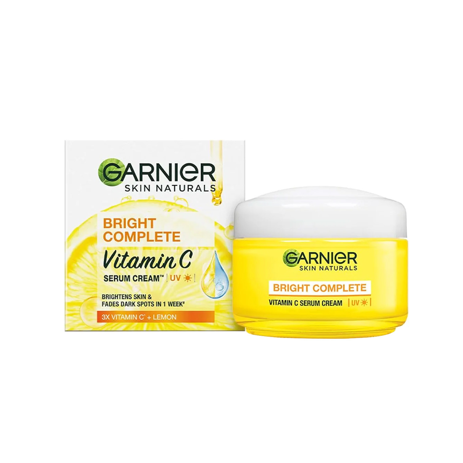 Infused with Japanese Yuzu Lemon Extracts and Formulated with Uv Filters, the Garnier Bright Complete Cream Efficiently Brightens Skin, Lightens Dark Spots, and Protects It from the Harmful Effects of the Sun. the Vitamin C Serum Has a Quick-Absorbing Formula That Blends with the Skin Superbly to Give a Long-Lasting Glow and an Even Skin Tone. Containing 3x Vitamin C Serum, the Garnier Bright Complete Cream Actively Reduces Three Different Kinds of Spots - Dark Spots, Pimple Spots and Uv Spots, and Thoroughly Reverses the Sun Damage. Include the Garnier Serum Cream in Your Skincare Routine and Get Spotless, Brighter Skin.