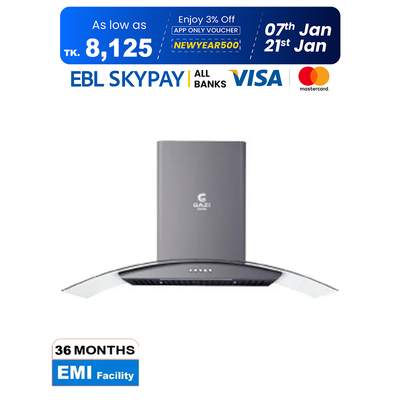 Gazi Smiss Kitchen Hood - EG-520B9 with 3 Speeds Push switch and top front glass 900mm (Best Price)