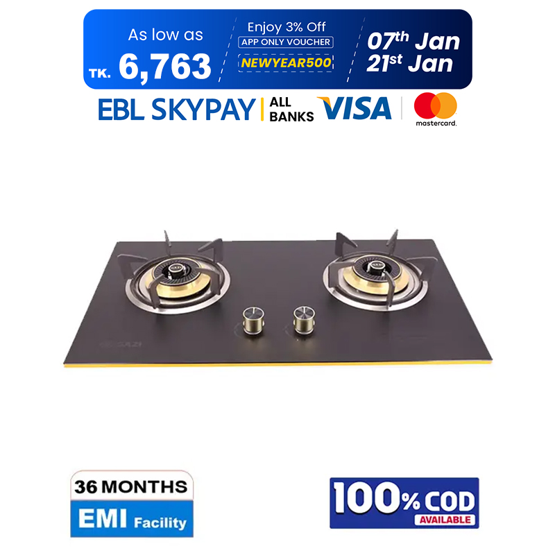 Gazi Smiss Gas Stove - High Quality Tempered Glass - TG - 202 (Best Price)