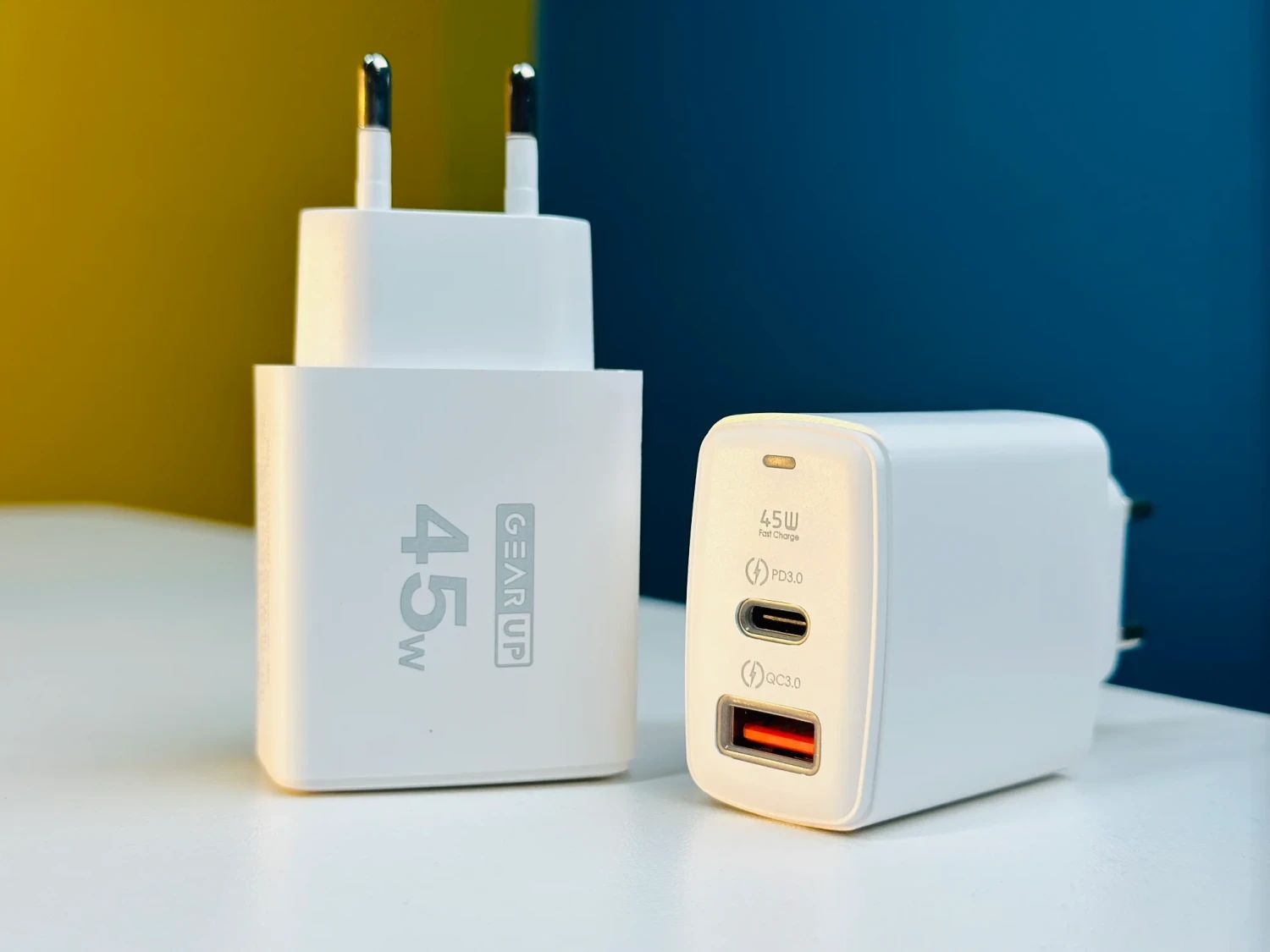 The GearUP GP007 45W Fast Charging PD 3.0 + QC 3.0 USB Wall Charger is a powerful and reliable charging solution designed to keep your devices powered up in no time. Equipped with the latest Power Delivery 3.0 and Quick Charge 3.0 technologies, it ensures ultra-fast and efficient charging for smartphones, tablets, laptops, and other USB-powered gadgets. With its dual-port design, you can charge two devices simultaneously without compromising on speed. Built with a smart protection system, it safeguards against overcharging, overheating, and short-circuits, ensuring safe and stable performance every time. Its compact and lightweight design makes it easy to carry anywhere, whether at home, office, or while traveling, while the durable build quality guarantees long-lasting use.