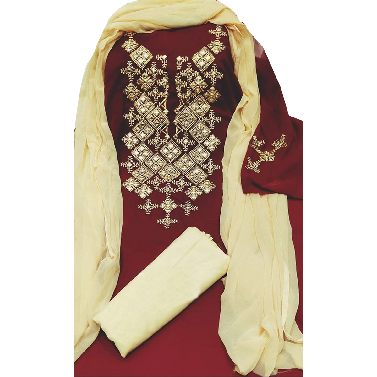 - Georgette/Jorjet Embroidery Work Salwar Kameez For Women [3 Piece]-Maroon Color