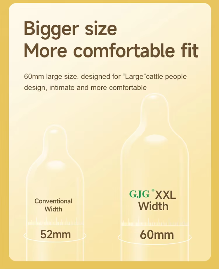 - Large Size: Experience comfort with GJG XXL 60mm condoms, designed for a larger fit and enhanced pleasure.