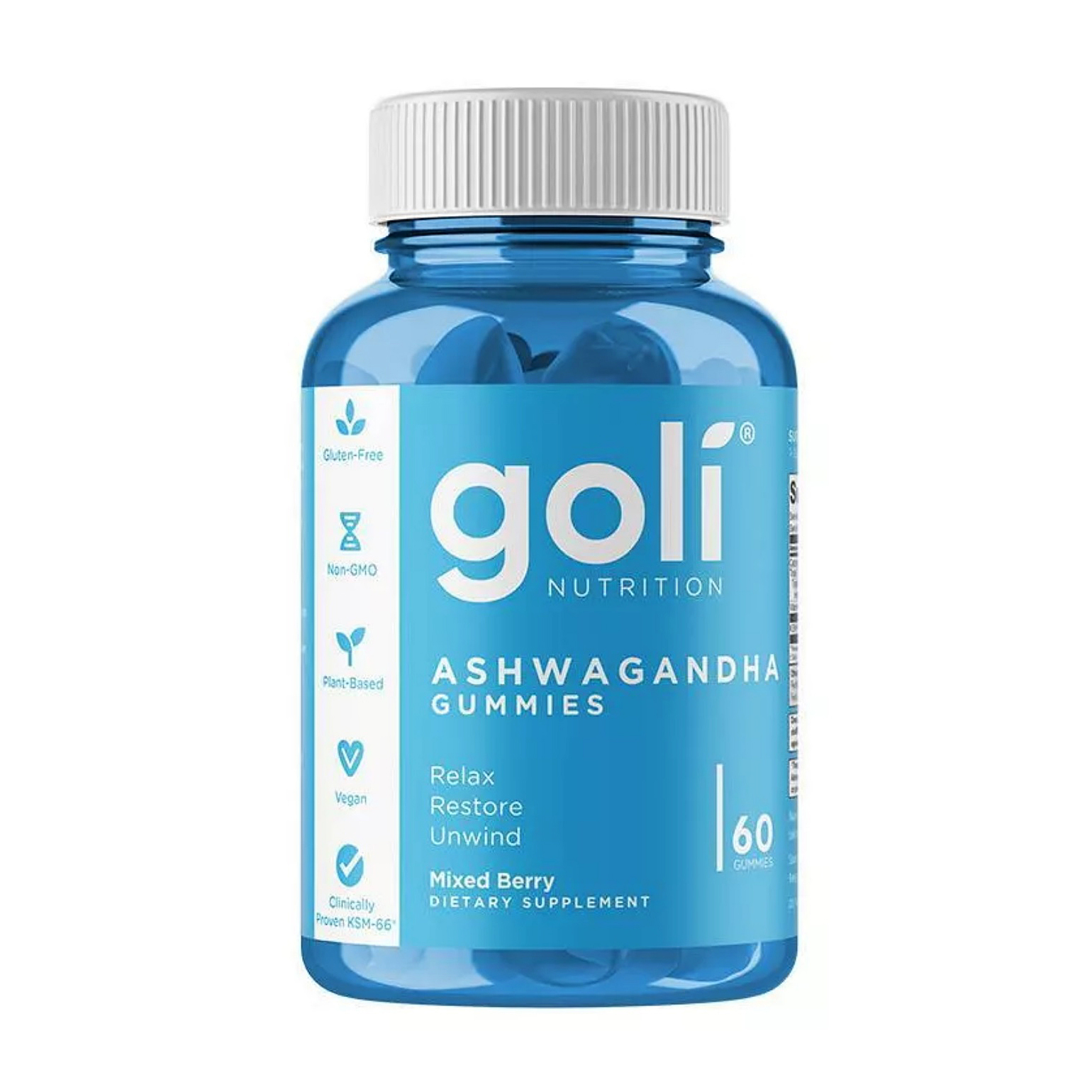 - Plant-based, Clinically-proven, Vegan, Non-GMO, Gluten-free & Gelatin-free: Each bottle of Goli Ashwagandha contains 60 delicious vegan, non-gmo, gluten-free & gelatin free Ashwa gummies.