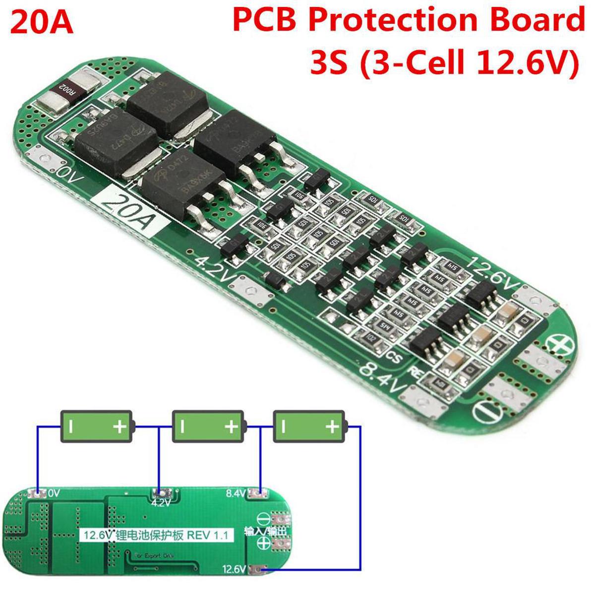 - Ideal 3S 20A 3S20A li-ion lithium battery 18650 charger protection board BMS PCB 12.6V cell charging protection module.
