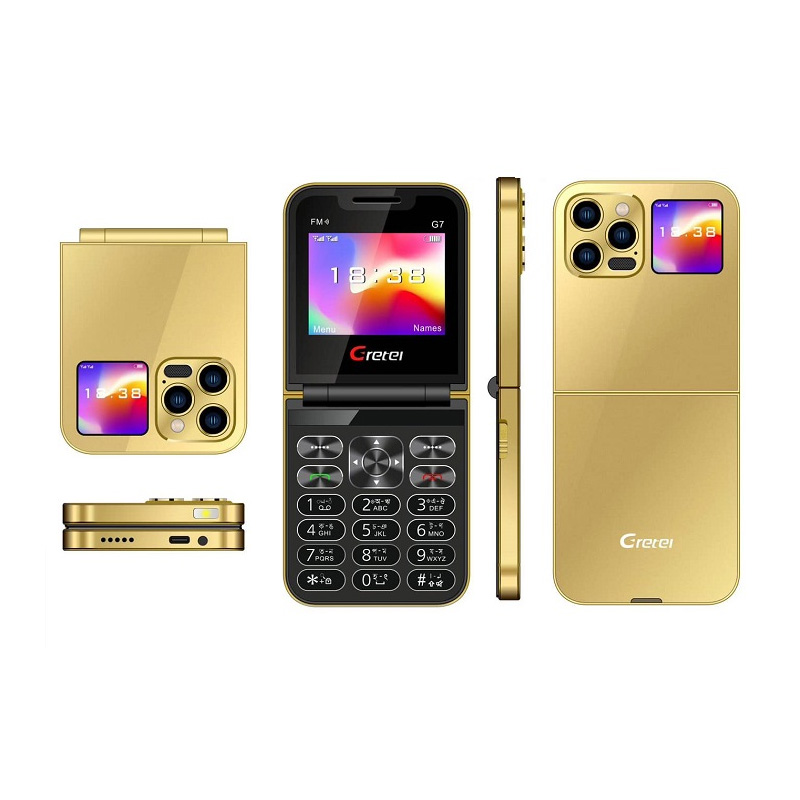 1* Gretel G7 Flip Folding Phone Dual Display Caseing Gold