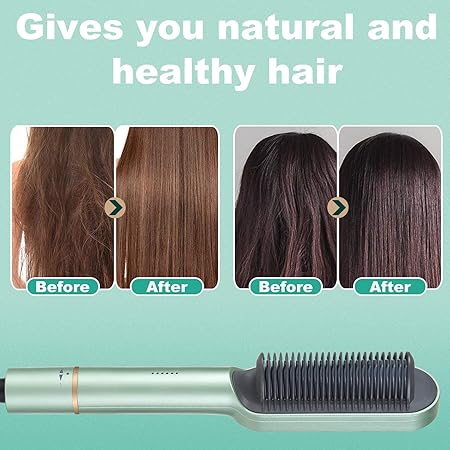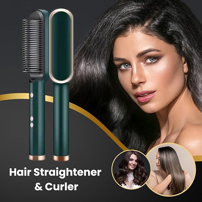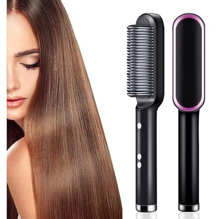 - This all-in-one wonder combines the gentle detangling power of a hairbrush with the smoothing prowess of a straightener. Glide through your mane with ease as the ceramic-coated bristles gently yet effectively tame unruly strands, leaving behind a lustrous finish that shines with vitality.With adjustable heat settings catering to every hair type and texture, from delicate waves to stubborn curls, achieving your desired look has never been simpler. Whether you crave silky smoothness or a voluminous blowout, this versatile styler effortlessly transforms your hair into a masterpiece of elegance.Embrace the freedom to style with confidence, knowing that this sleek and ergonomic design is as easy on the eyes as it is on your hair. Elevate your daily routine and unlock a world of endless possibilities with the Hair Straightener Brush & Styler – the ultimate fusion of style and convenience for the modern trendsetter.