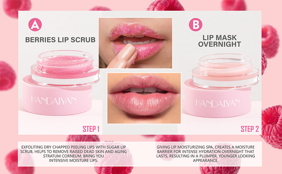 Say Hello to the HANDAIYAN 2in1 lip sugar scrub - Your Ultimate Lip Care Secret! Are you a lipstick lover looking to enhance your pout's natural beauty? Look no further! Our innovative lip mask and scrub combo comes in a convenient film box for easy storage, making it a must-have for your daily lip care routine. The film box makes it easy to store various lip care products, including a moisturizing lip mask and an exfoliating lip scrub, designed for both day and night use. These products are enriched with fruit butter, and packed with amino acids, protein, vitamin A, and other essential nutrients. The star ingredient, avocado, offers excellent antioxidant properties and effective moisturization.