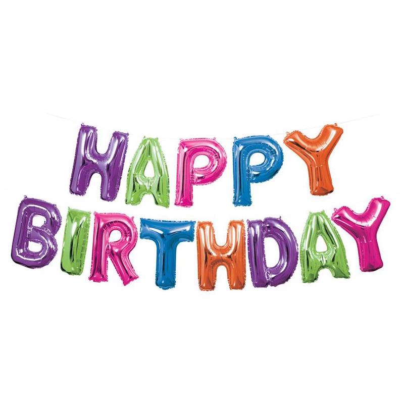 - Golden, Inflatable 'Happy Birthday' banner.