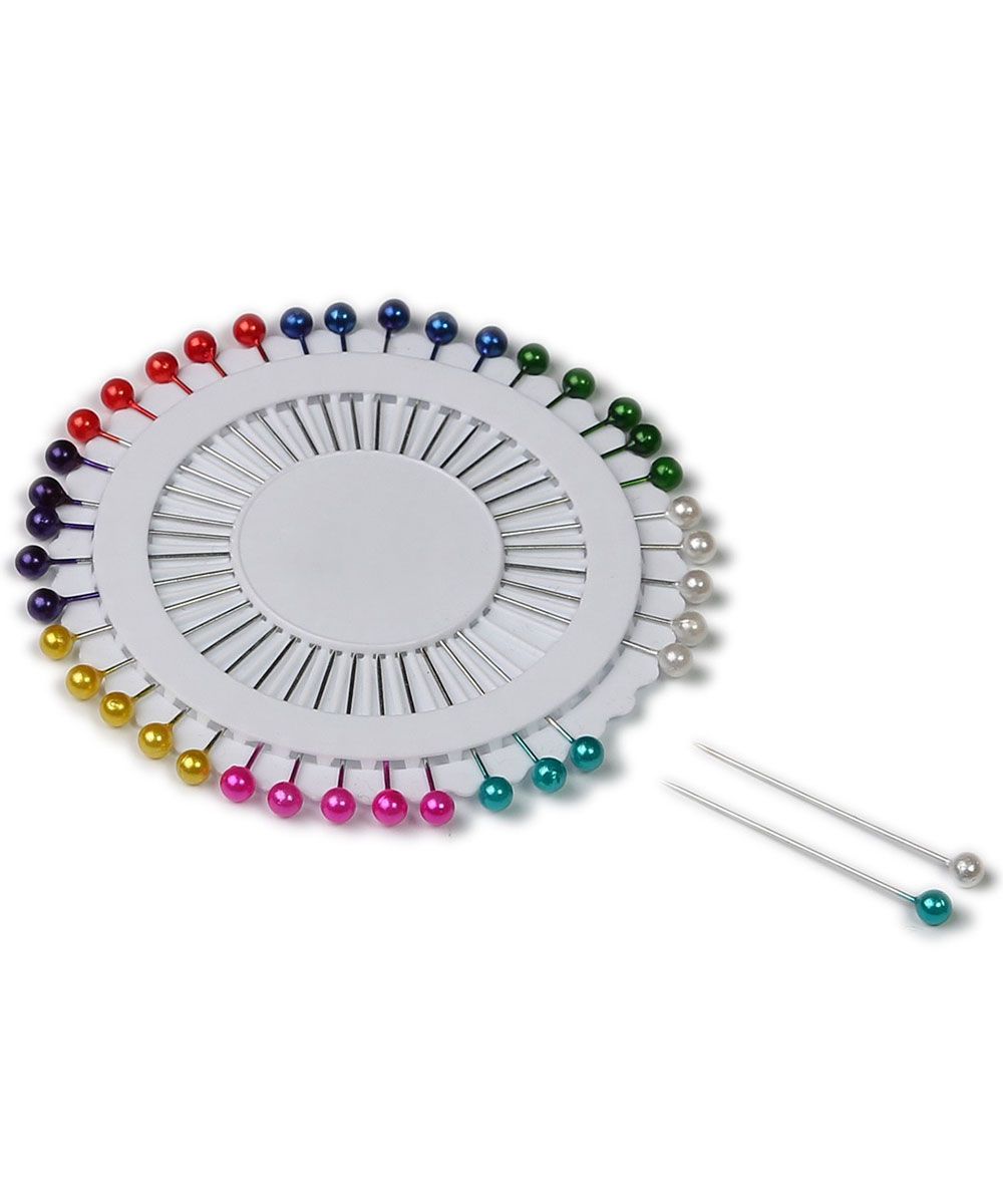 Each wheel contains 40 pins with a small pearl head in black and white.Approximate length of pin: 4 cm.