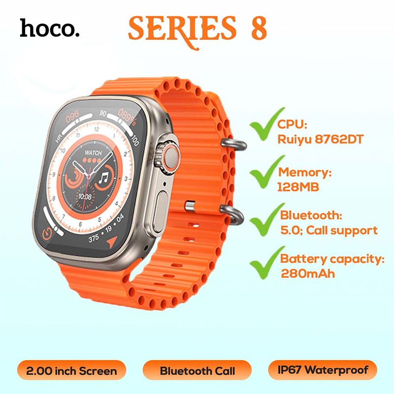- Hoco Y12 Ultra Smartwatch Waterproof Wireless Charger Calling Watch 8 - Orange