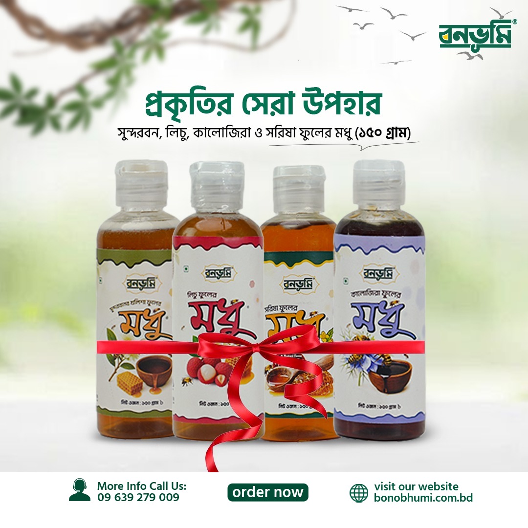 বনভূমি দিচ্ছে বিশেষ ৪টি মধুর কম্বো প্যাক, যেখানে একসাথে পাচ্ছেন ভিন্ন ভিন্ন স্বাদের চারটি প্রাকৃতিক মধু—