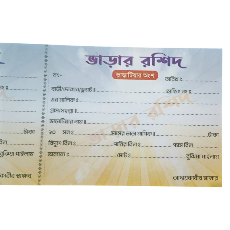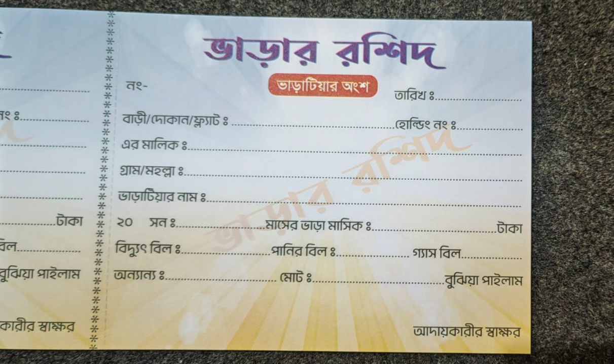 - বাড়ি ভাড়ার টাকা আদায় নিয়ে বিভ্রান্তি আর নাই আমরা নিয়ে এসেছি বাড়ি ভাড়া আদায়ের রশিদ যা ভাড়াটিয়া ও বাড়িয়ালা উভয় পক্ষের মধ্যে একটি করে বৈধ কাগজ প্রদান করবে বাড়ি ভাড়া আদায় নিয়ে কোন সংশয় বা ভুলে যাওয়া আম নয়.
